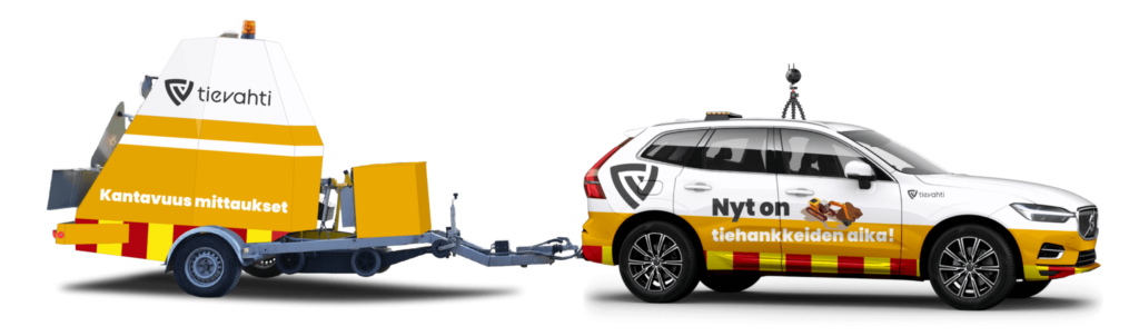 Tie kantavuusmitataan ajoneuvon perässä vedettävällä mittauslaitteella.